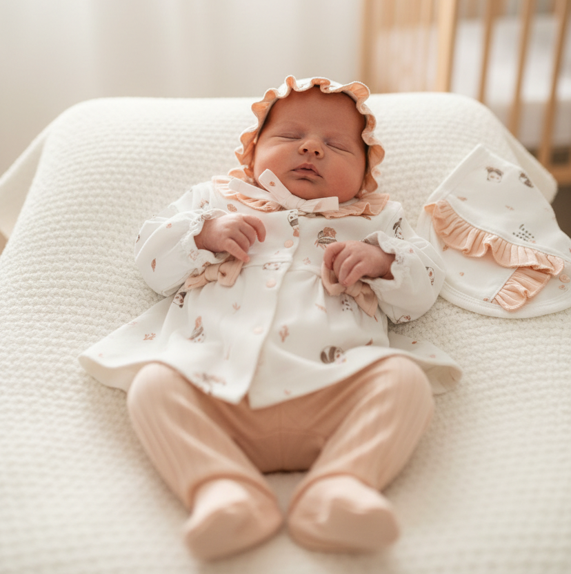 Tutina Completo Cotone Fiocchetti Rosa Cipria Con Accessori
